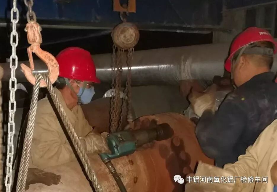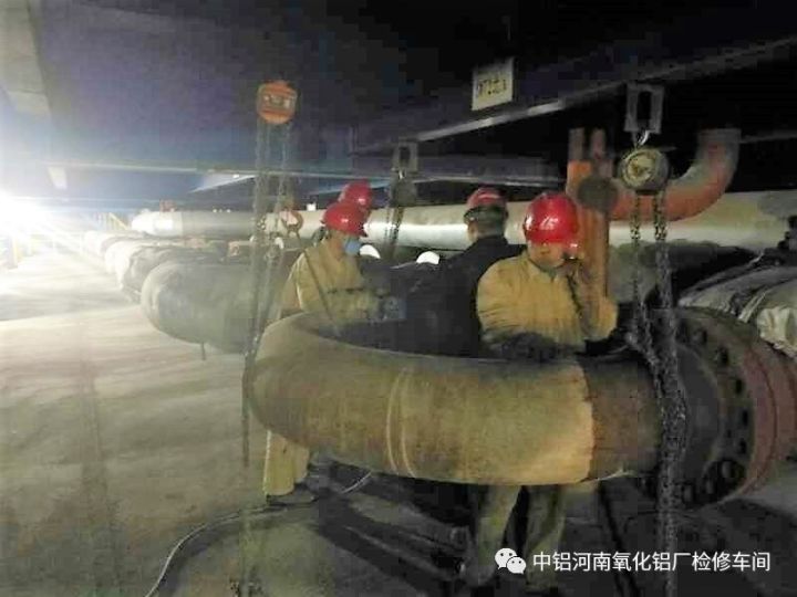 由于溶出车间E组管道化停车检修时间正值十一长假,又是中秋节,检修车间综合班的员工放弃与家人团聚一堂欢度中秋的机会,依然忙碌在检修一线。此次检修车间承担起了对40根弯管进行拆卸的任务,三个综合班每个班当天必须拆十组弯管,这样才能保证管道清洗正常进行。