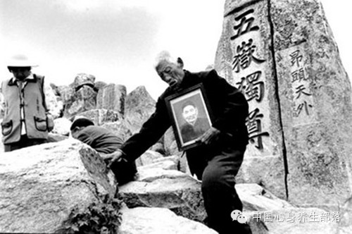爷爷一辈子没上过泰山,爹抱着爷爷的画像爬上泰山极顶。