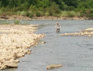 2017年8月2日上午10:20分左右,黄家圳高铁桥下急滩处,又有人在此处电鱼。