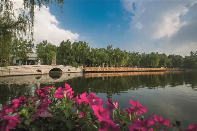 继续往前走又看到一片各式各样的花海,让人们的心情无比愉悦。穿过花海到了一片沙地那里有供小孩子们玩儿乐的设施。继续往前走路过军事博物馆又到了孩子们最喜欢的戏水乐园。在戏水乐园畅游几个小时之后,顺着戏水乐园门口的木质吊桥,来到了游乐区,这里有旋转木马,海盗船,高空铁索秋千,攀岩等各类挑战项目。这些项目尝试过后我们顺着路来到了菊花女广场。这里可观看土生土色二人转表演。