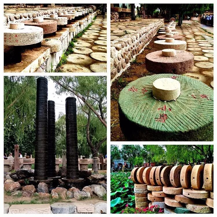 顺着湖边上几节台阶我们就来到了碾子山。在这里有各式各样大大小小的碾子和磨盘供游人们体验。在碾子山的身后有一条古碑廊,都是历代文人墨客留下的珍贵财富。从古碑廊右手边的通道直接进入山庄主路。这里可看到长达几十米的龙渠,以及葫芦山庄的大城门楼。在城楼的左手边进入荷花池,被风吹过的莲花摇曳生姿。从莲花池的出口走出,就会看到一块儿巨大的聚才猪石像供游客们合影留念,还可登上山庄城门楼上远眺山庄美景。从城门楼上下来后步行十几步就是博物馆。博物馆内的藏品数以万计,每一件都有详细的说明。