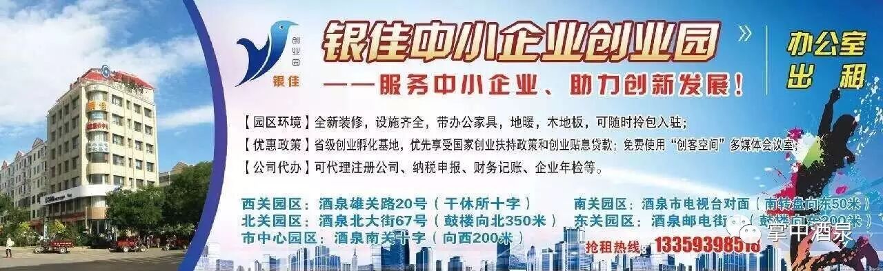 【酒泉创业孵化基地】创业场地出租 | 13359398518
