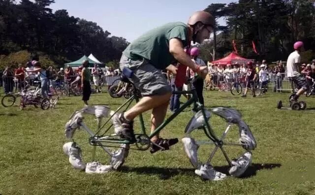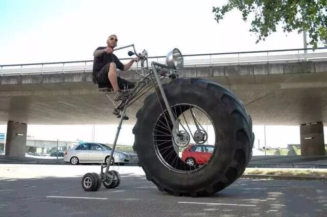来自荷兰大学生沃特靠从朋友那里收集钢管,自行车组件和拖拉机轮胎,造出了这台巨大自行车。并表示,骑一次车至少要一口气吃下三顿饭!
