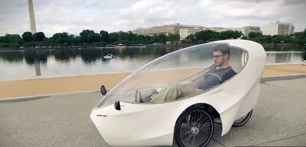 这是一款斜躺式三轮自行车,采取的是类似于炮弹的外观设计,能为骑行的人遮风避雨。但老有一种说不出来的别扭感~~
