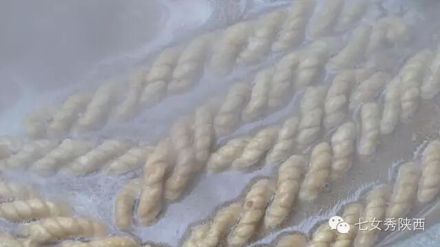 酸、辣、香的混合味道,肉臊子、小馄饨、锅盔馍的组合出现,集中了关中美食的精华。 关中人把肥肠做成的泡馍叫葫芦头泡馍,吃了千百年之后,做法也有了新变化,蒲城的老单家葫芦头特殊之处在于一锅鸡汤。肥肠切成韭叶宽、四五寸长的细丝。先用鸡汤炖肥肠,配合足量的花椒和辣椒;馍块在另一口锅里用鸡汤煮一两分钟,热透回软,出锅进碗。 到了临潼,最受人们欢迎的是做成小碗驴肉,配合烧饼或者馒头做成泡馍的吃法。 煮熟的驴肉、胡萝卜和豆角分别切成小丁,先用调料把胡萝卜和豆角炒到半熟,加上高汤熬煮,熟透之后,放上驴肉,小火炖透,就可以出锅了。 持续加热的大锅里煮着粉条和豆腐,分批分次的加上葱段、油豆腐和海带丝,再放上豆瓣酱和大油,捞上或硬或软的粉条,调上或轻或重的盐、花椒粉、和油泼辣子,再来上一勺红烧肉。每舀一碗,汤色浓重,麻香荡漾,顺手再来一块锅盔馍,这就是麻食泡馍了。 用料同样丰富的泡馍,还有来自渭南澄城的麦子泡,传说汉光武帝刘秀曾吃过这种美食,流传下来便成了当地的招牌美食。
