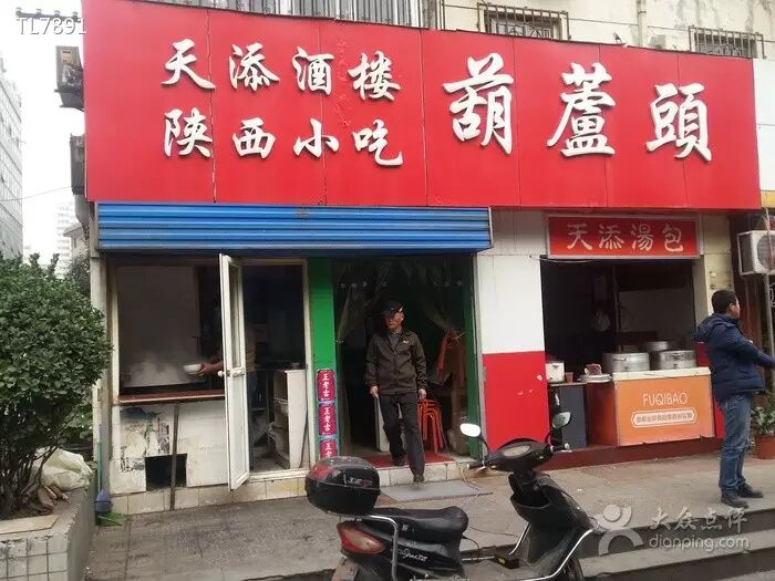 这几年随着城区扩大,经常在高新这边吃饭,几年前秋日的一个午后,在光华路办完事后饥肠辘辘,正寻摸着如何裹腹,冷不打瞅见路边一师傅在冒肥肠,这如何能够抵御,三步并作两步便进了店,瞅着门头连卖啥都没写,老旧的排头上书“天添酒楼”四字,想来是取的“天添岁月人增寿”用意。