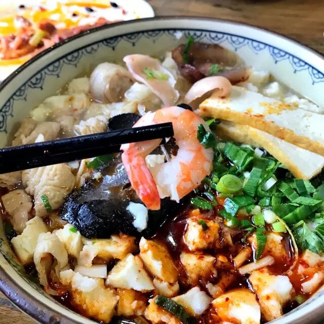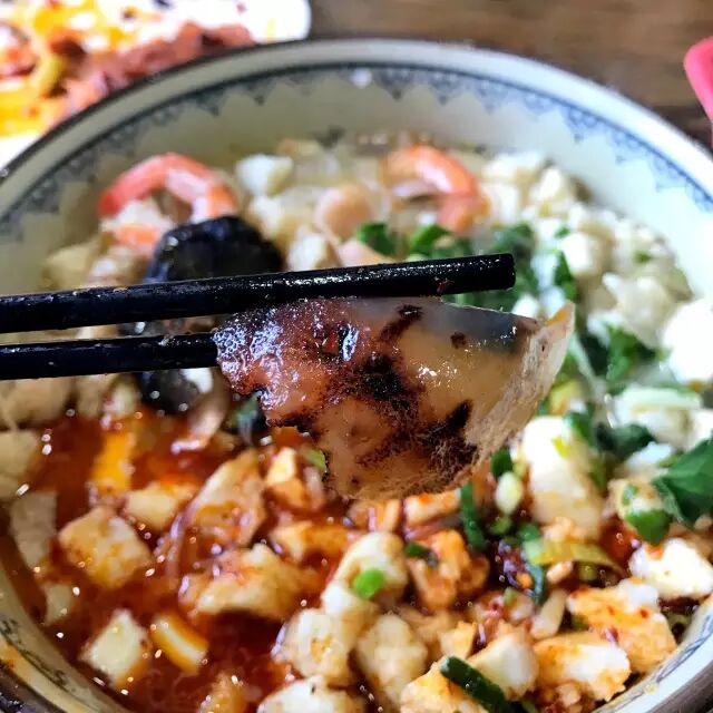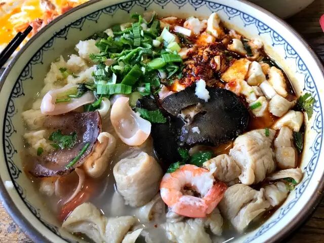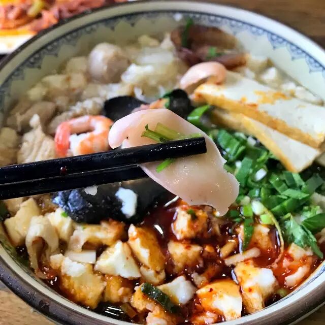 里面除了大肠,还有鱿鱼、海参和虾。虽然海鲜的量不是特别大,却能给人一种意外的惊喜感。