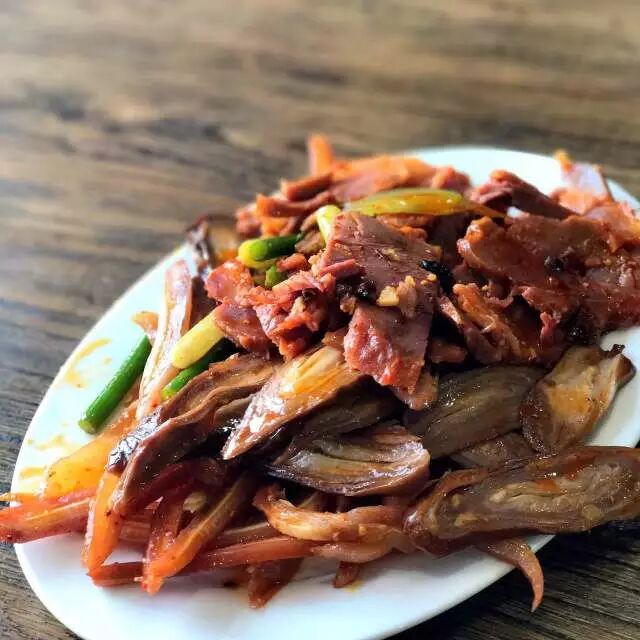肠子偏硬,很有嚼头,外皮和里面的肉形成了咀嚼上的层次感;耳朵咸辣适中,下酒也下饭;土著哥最爱它家的牛肉,肉和筋混在一起,辣子油包裹着整块牛肉。