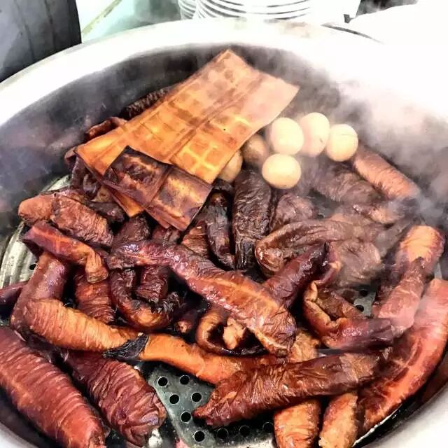 当然也少不了葫芦头标配的梆梆肉,是熏好的肥肠、豆腐干、鸡蛋...