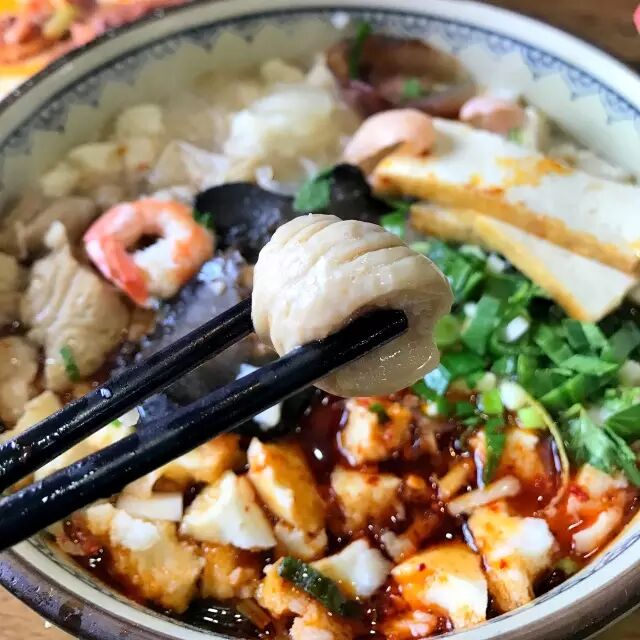 相比于普通的丸子,这里的肉丸好像是先炸后煮的,咬下去的口感非常丰富,有酥脆的感觉。