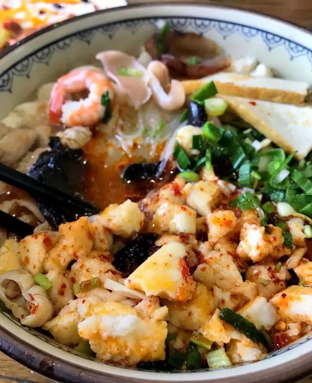 大家还可以根据自己的喜欢,加各种配菜,肥肠、丸子、肉片、粉丝、木耳、鹌鹑蛋、豆腐等。