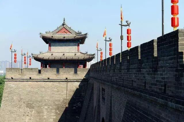西安火车站前面就是古城墙,图片就是在古城墙拍的,夜景更美!