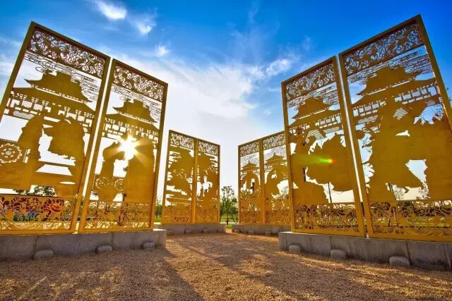 遗址公园与大唐芙蓉园的南门隔街相望,这里在唐代就是皇家御苑。如今这里建造了不少仿唐古建筑,以及表现唐代生活的雕塑。