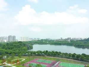广州绿地城还斥巨资将凤凰湖河道纳入项目范围内,形成前有凤凰湖河道玉带环绕及湿地公园景观,后有3万平方米围合式中心园林的景观资源。还在项目里建了一个临河公园、湿地公园,用滨河骑行区、滨河有氧跑道与凤凰湖自然分隔。