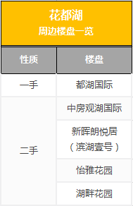 花都湖一带目前成交较为活跃的有中房观湖国际、新晖朗悦居(滨湖壹号)、怡雅花园、湖畔花园等。其中离湖最近的有中房观湖国际及新晖朗悦居,放盘均价不到“3字头”。