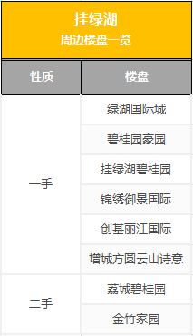 距离挂绿湖较近的当属增城的石滩板块和荔城板块。石滩板块目前有在售的绿湖国际城、碧桂园豪园、挂绿湖碧桂园等楼盘,楼盘规模较大,产品选择也比较齐全,加上有地铁16号线的利好,区域热度在不断上升。荔城板块则主要是增城本地人购买的主力板块,不少挂绿湖拆迁户选择在此置业。区域内有锦绣御景国际、创基丽江国际、增城方圆云山诗意等楼盘,一手供应量已很少,可以选择成熟小区的二手房,例如荔城碧桂园、金竹家园等小区。