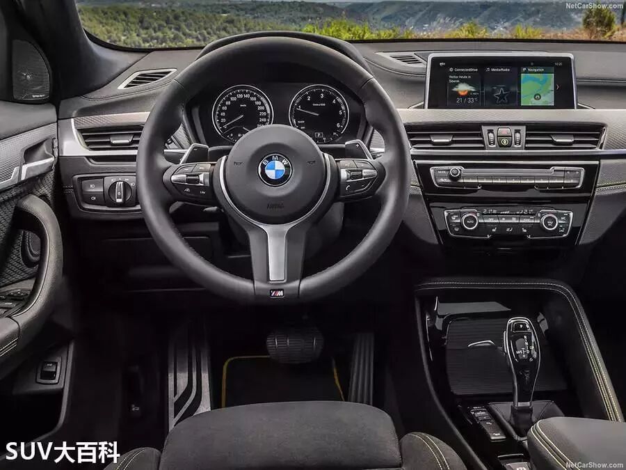 在内饰方面,宝马X2与X1有相似的设计语言。银色装饰面板,黑色为主的内饰风格,以蓝色饰条进行点缀,加上全新造型的“”三幅式运动方向盘,典型的“鸡腿式”换挡杆,整体风格很有宝马的特点。
