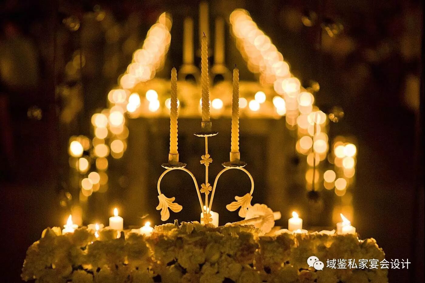 浪漫温馨的气氛还是需要烛光来营造。婚礼音乐缓缓响起,在摇曳的烛光下许下一生的承诺。