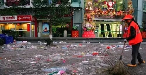 屡见不鲜,人山人海的狂欢之后,年轻人的“圣诞节”变成了环卫工人们的“圣诞劫”。
