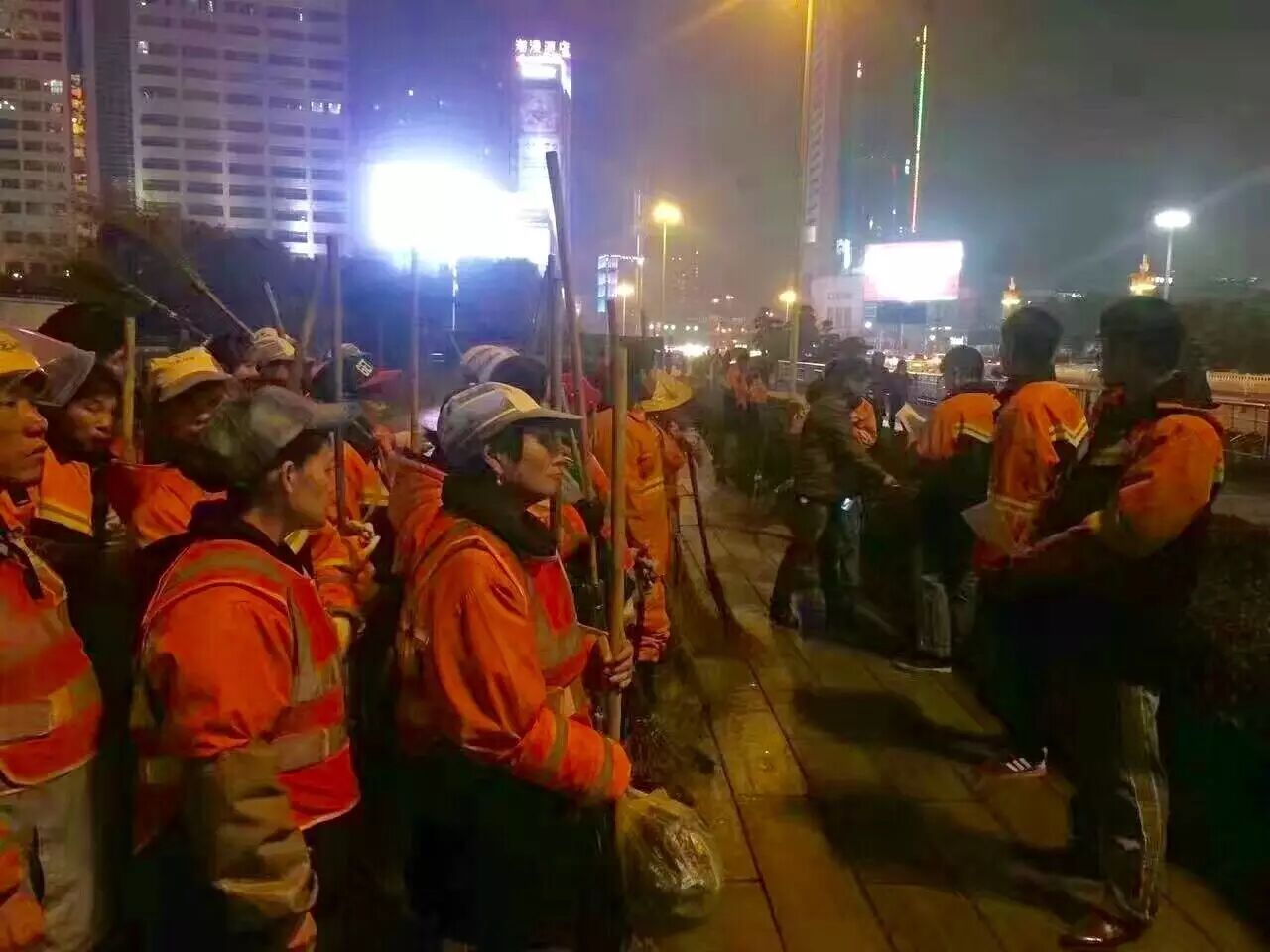 每年的圣诞节都给环卫工作带来巨大压力。近来昼夜温差大,有时夜里甚至能达到零下十几度。你短暂的快乐却让他们在寒冬夜里更加辛苦……
