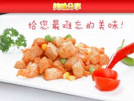 配料表:精选鸡胸肉、饮用水、鲜青豆、鲜玉米、胡萝卜、食盐、味精、食糖、奥尔良腌制料。