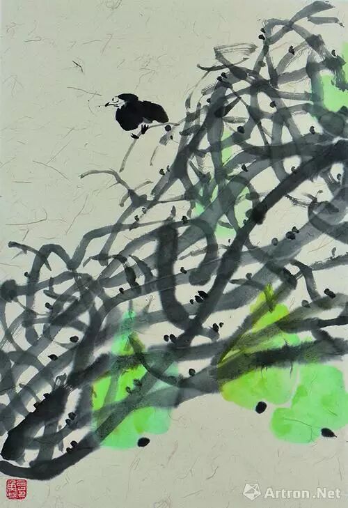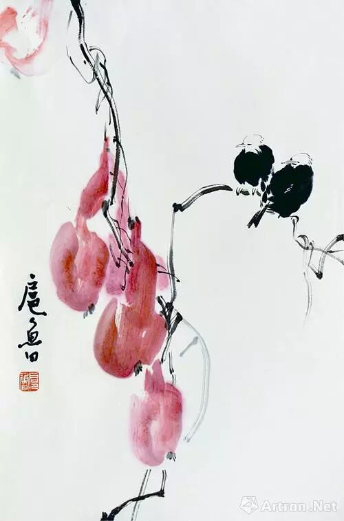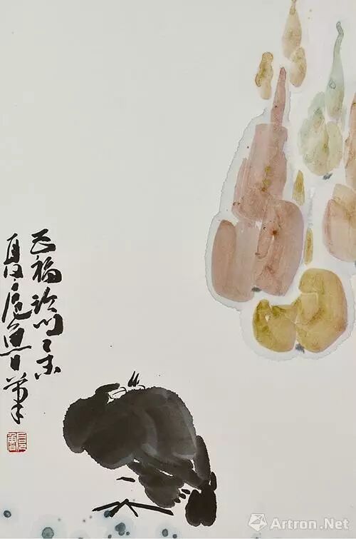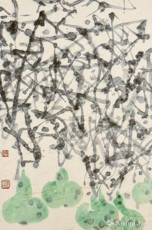 扈鲁先生的葫芦题材花鸟画既传承了文人画的传统,又明显突破了传统,在技法上大胆探索,吸收西方绘画的养料,融合现代绘画各流派的特长,形式多样,意境高远,给人以或淡雅清秀、或遒劲沧桑之感。