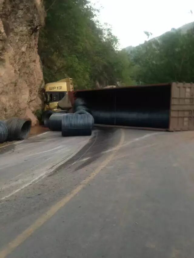 12月12日下午5点左右,一辆拉钢筋大货车侧翻在葫芦口到宁南路上,车上钢筋 洒落满地。