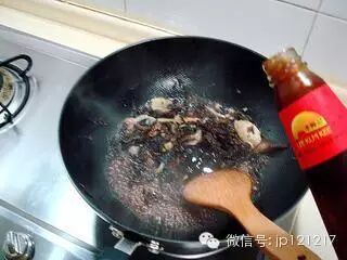 倒入适量酱油,再倒入蚝油炒匀,然后注入适量清水煮开。