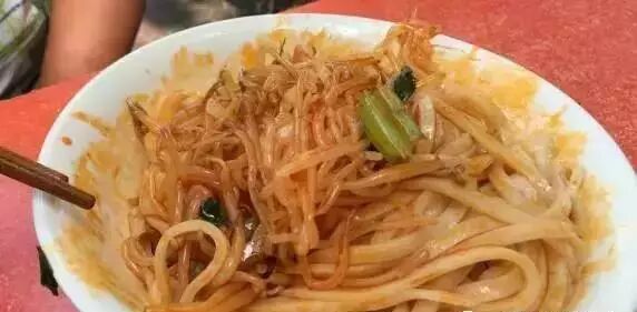 在土门无人不知无人不晓的一家馆子,开了很久的老馆子,生意非常好,饭点人很多。他家出品的是秦镇米皮,皮子糯软筋道,再配上红红的辣子油,豆芽和芹菜,解馋的很。进店以后就看着服务员利落地抓一把皮子摞入碗中,撒上芹菜、绿豆芽,再抓一小撮皮子在熬得浓郁的辣子油中沾一下,米皮就裹上神奇的辣油。三两下搅拌均匀之后,吸溜入口,瞬间米皮的糯和辣子香蔓延口中。