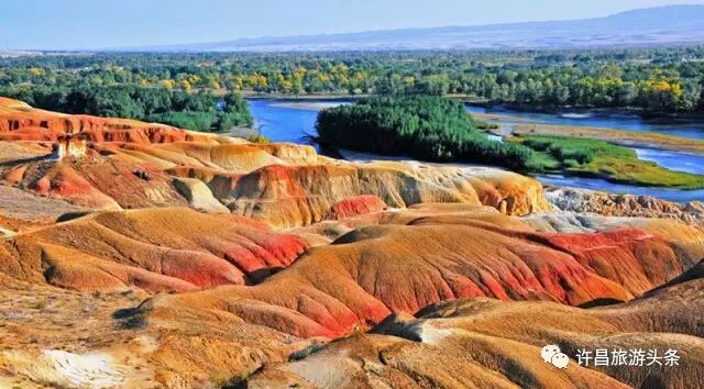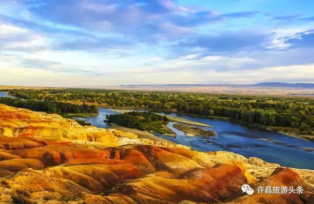 晚上抵达布尔津,参观【五彩滩】,国家4A级景区、毗邻碧波荡漾的额尔齐斯河,与对岸葱郁青翠的河谷风光遥相辉映,阳光照射下的五彩滩,就像是上帝打翻的调色盘,光怪陆离的色彩从四面八方涌来,鲜艳的红色、黄色,神秘的蓝色和紫色以及纯洁的白色,绚丽的五彩滩依傍着碧波荡漾的额尔齐斯河,弯弯的河滩流水潺潺,郁郁葱葱的河谷树林和对岸的五颜六色的群丘遥相辉映,一河中分两岸,胜似飞来两重天,大自然的鬼斧神工把截然不同的两种地貌巧妙地融合在一起,构成一幅浑然天成的奇景。