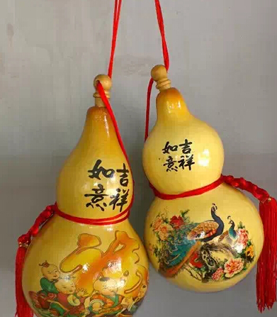 葫芦自古以来就是“福禄吉祥”、“健康长寿”的象证,也是保宅护家的良品。葫芦在民间传统喻意中认为可保体泰健康,挂在睡床尾或摆放在睡侧。就可以吸取不良的气场,使其快速的好起来。如果是健康人,可以吸走人身上的晦气,提升运势。中国传统民俗不仅认为葫芦可促身体健康,更可添夫妻情分。若夫妻缘薄,事摆放一只葫芦在床头,增加夫妻恩爱。葫芦挂在大门外,则有保屋内人平安的作用。