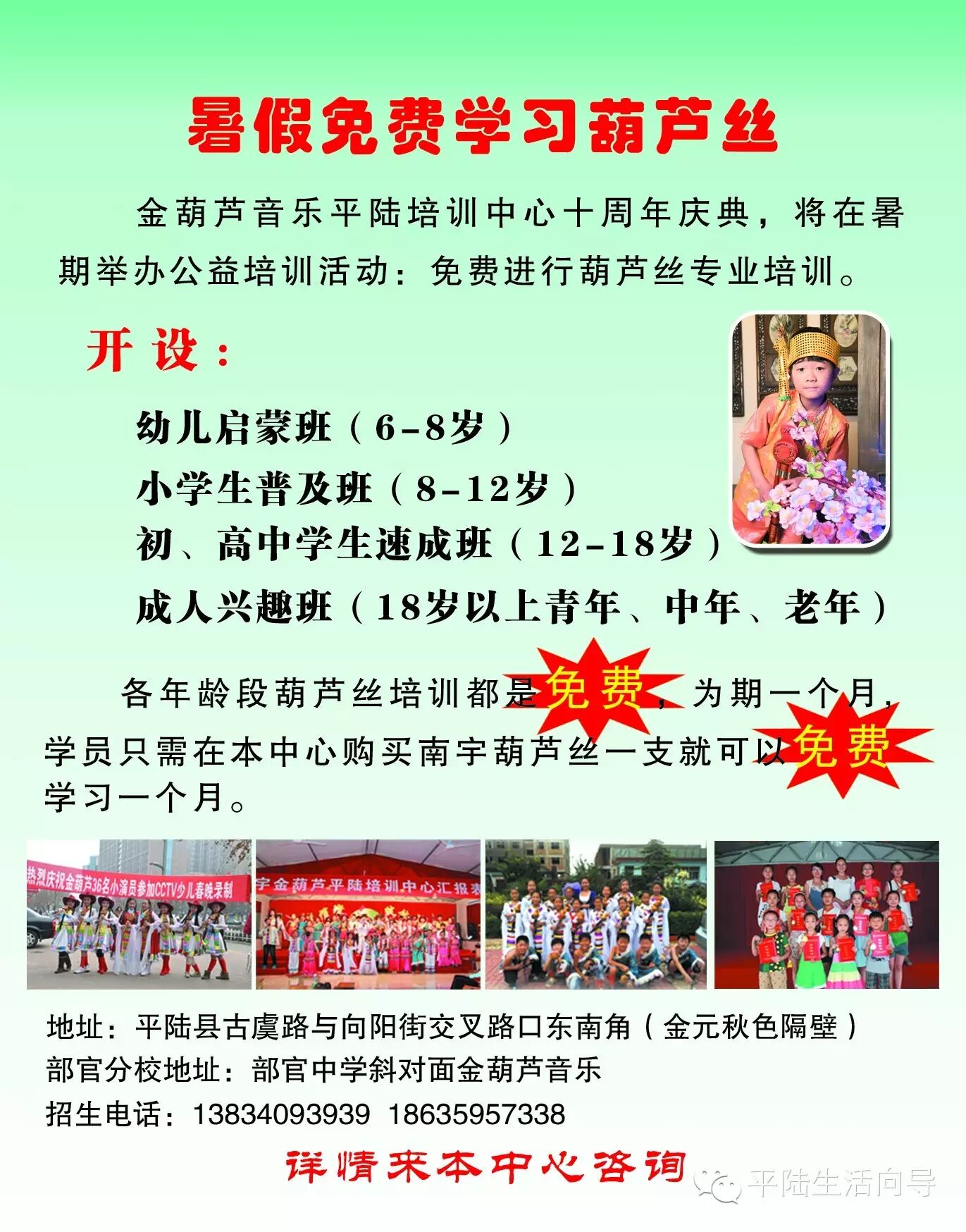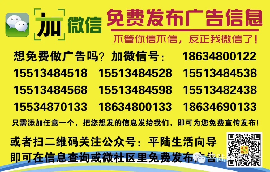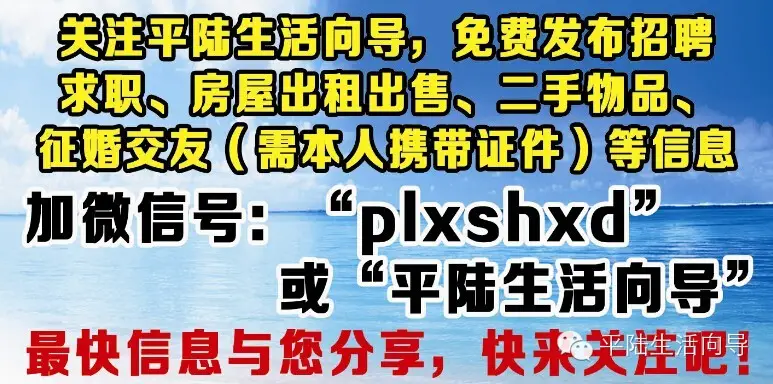 平陆最值得关注的微信媒体,最实用的微信公众媒体。推送平陆文化,同城活动,吃喝玩乐,新闻资讯,商家优惠等优质内容,您值得关注。在这里您可以自己免费发布信息:最新促销折扣、招聘求职、征婚交友、房屋出售出租、二手物品、二手车辆、便民信息、全城电话、更有免费话费可以领取...