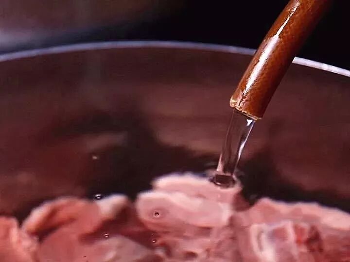 高汤是泡馍的灵魂,也是每家店的最高机密。每天的汤都是现煮的,费时费力,但是味道好。熬汤要用黄牛肉,而且还要选公牛。它没有过多的筋膜,吃起来软烂鲜香。牛肉下锅前要用活水浸泡5个小时,将血水和杂质全部泡出来。