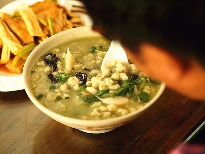 对于吃货来说,掰馍是难以替代的乐趣。馍粒大小是影响口感的决定性因素。太大煮不烂,太小就会没有口感。经验丰富的人掰出来的馍,每粒都连皮带瓤,掰完了用手掌压住轻轻一抹,带着烙斑的硬面全部朝上,简直是武侠小说里出来的绝世高手。