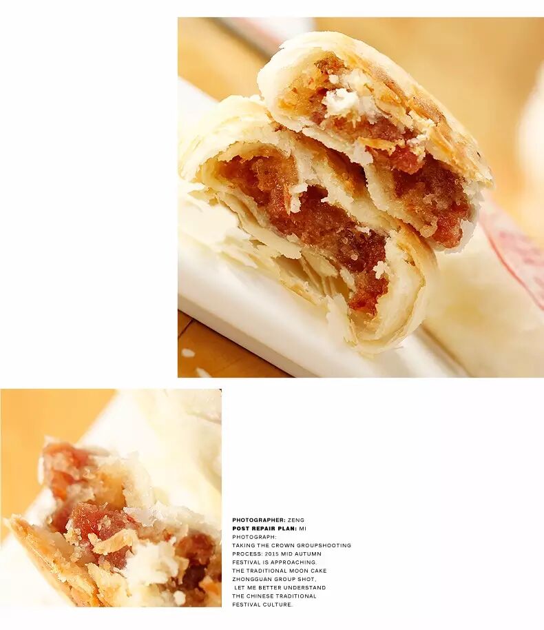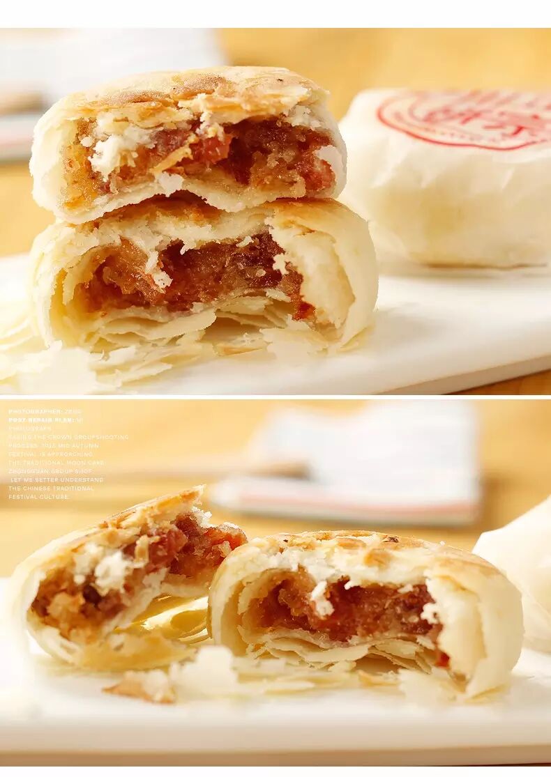掰开一层层白色的“饼皮”,没想到很轻松的就掰开了,因为饼皮很薄,而剩下的——全是肉!刚出炉的饼还是热的,经过烘培发出来的面皮香味夹杂着新鲜的经过特殊处理的肉香扑鼻而来,此时快糕饼对于我来说已经不再是一块普通的糕饼了,这简直就是一道菜!