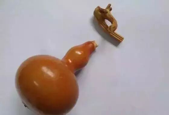 1、将龙头下端削圆呈凸状,再将葫芦嘴挖出一个凹圆,完成后对接一下,严丝合缝即可。
