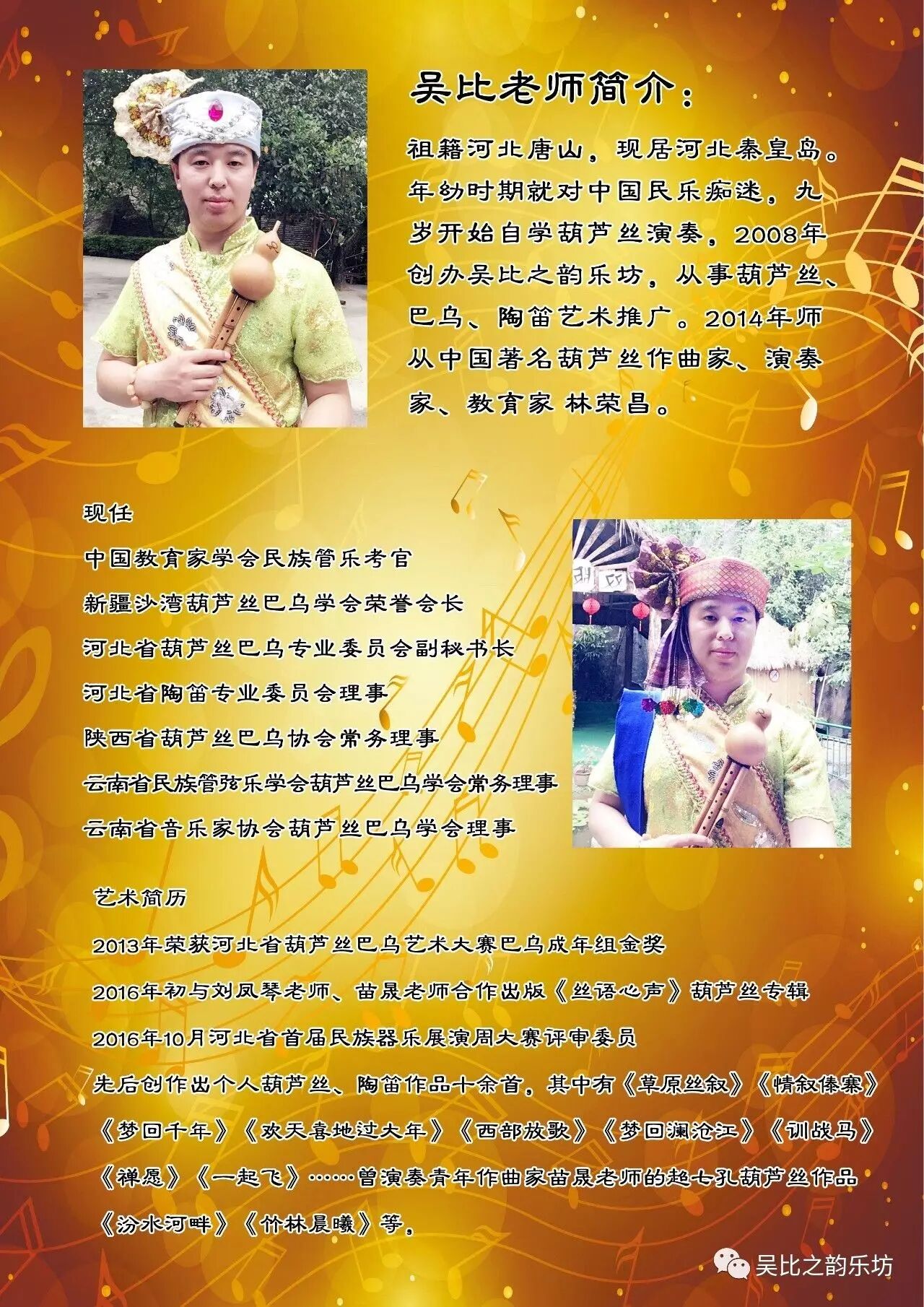 为深入表现江南作品的风格,这首曲子结合超七孔葫芦丝音域创作,超七孔葫芦丝拓宽了葫芦丝的有效音域,但也提高演奏的难度。吴比老师以其深厚的演奏功力,诠释了超七孔葫芦丝演奏大型多乐章的葫芦丝随想曲,让柔美的葫芦丝和醉人的江南民歌在一起碰撞出扣人心扉的天籁之音,将纸上的音符变成了动听的旋律,带我们走进了这幅江南的画卷。