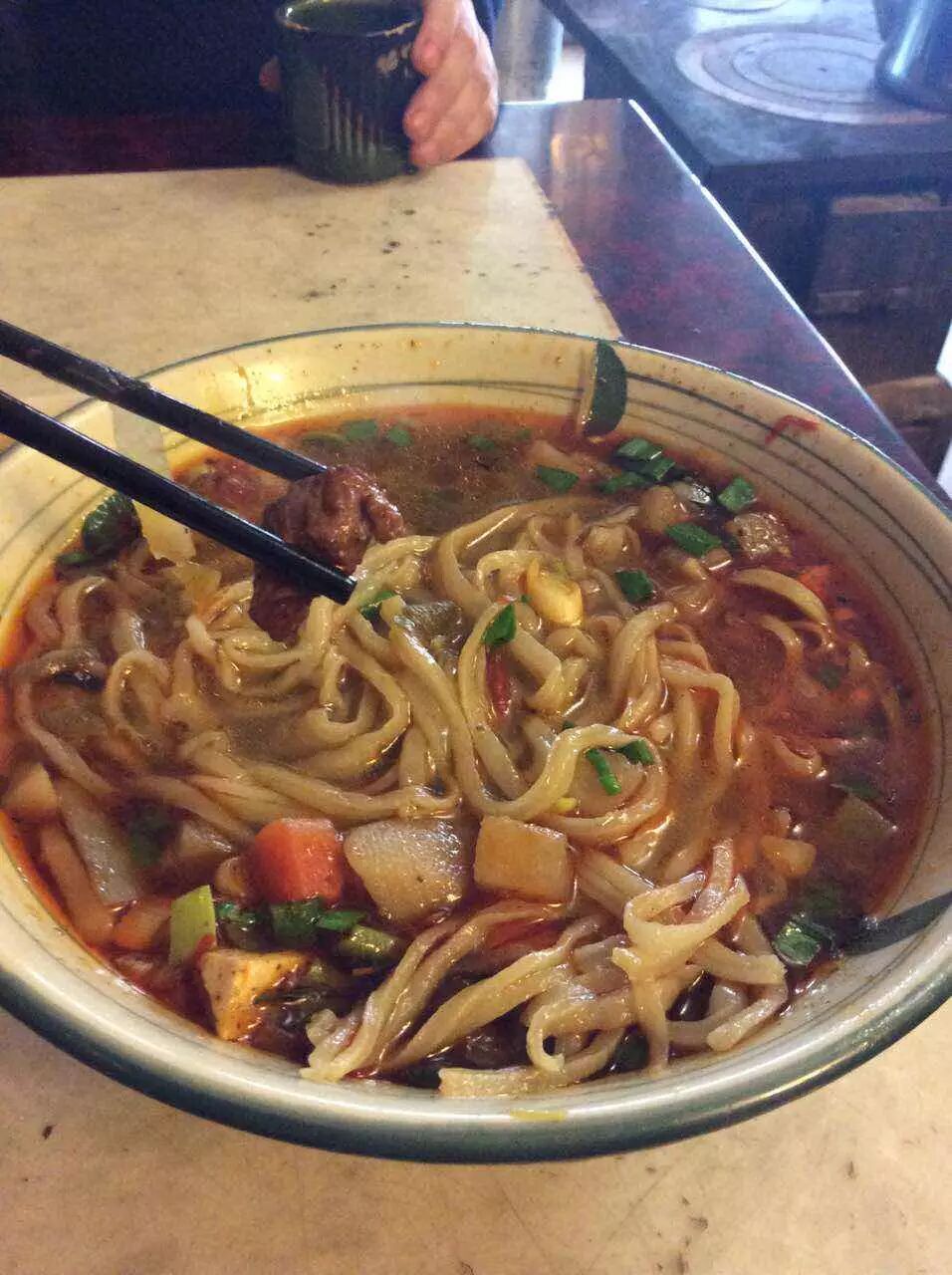 因为是一个人,我点了一份臊子面和一盘小菜。