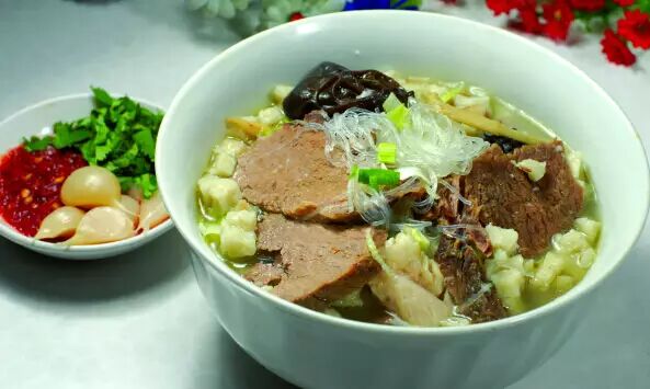“姚老三”选用新疆地产优质羊后腿,牛腩肉,选用天然香料,独有秘方炖煮,纯手工特制面饼,配地道的西安辣酱,糖蒜,原汁原味。肉烂汤浓,泡馍柔软筋道,香气诱人,食后回味无穷,兼有暖胃之功能。