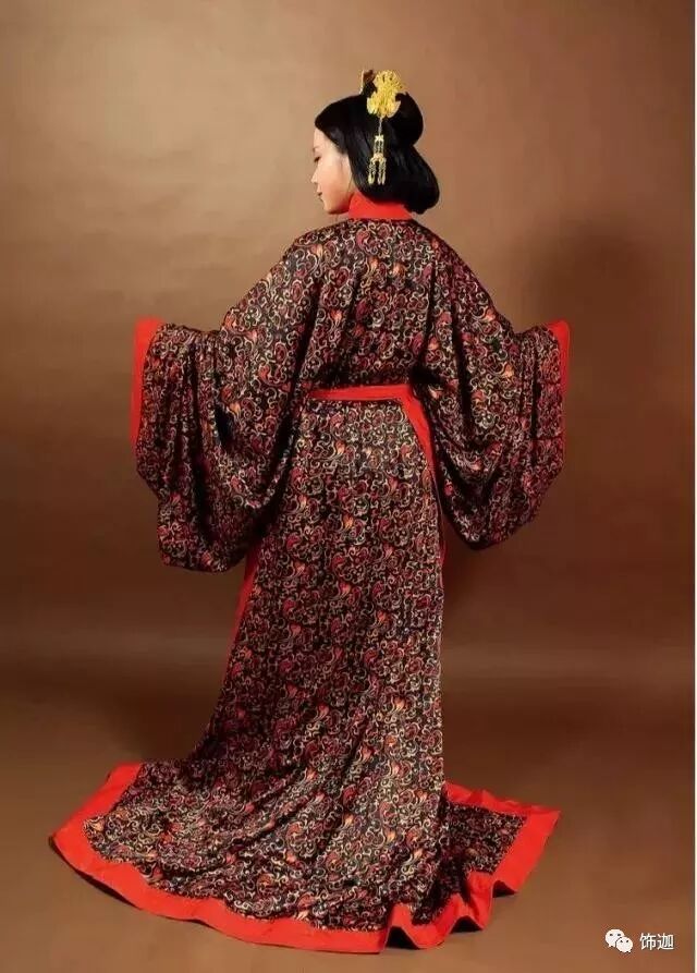 “衣裳相连,被体深邃”——这是唐人眼中的“深衣”。现在来看,它的形貌也的确如唐人所说,上下两部分在制作时连在一起,用下摆将身体包裹其中,真可谓是一条“连衣裙”。