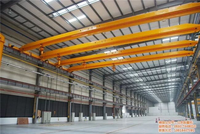 电动双梁起重机有平行的两根梁,薛城单梁起重机,电动葫芦安装在小车上,小车摆在梁正上方的轨道上;