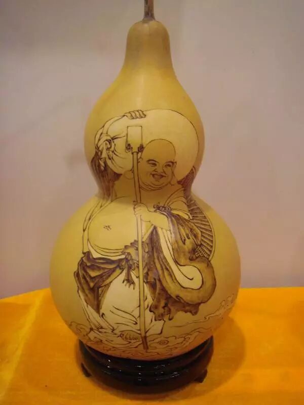 在现代葫芦器工艺中,又出现了一个新的品种----葫芦雕刻。其中又可分为两种:葫芦雕和刻葫芦。葫芦雕区别于其他葫芦器的主要特征是既非单纯的范制,也非单纯的雕刻,而是将范制、雕刻、火绘、拼接组合融为一体,成为一门综合的葫芦器工艺。刻葫芦,顾名思义,是在葫芦上刻字雕画, 使其成为供人欣赏的葫芦艺术品。葫芦雕是一种立体艺术,而刻葫芦则不是,全是在葫芦表面上作文章。据说刻葫芦最初在甘肃一带民间流传,人们在葫芦上走刀划针,随意刻画出简单的花草虫鱼图案,作为观赏。后来经过艺人的不断摸索、研究,使工艺水平不断提高,逐渐形成了专门刻葫芦艺术。
