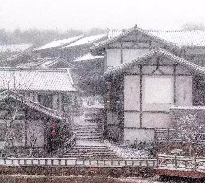 如果不是这场雪,我甚至不知道在湖北襄阳还藏着这样一座盛世唐城。白雪漫漫,庭树飞花,似紫禁城,也似长安巷……美到难以言喻!