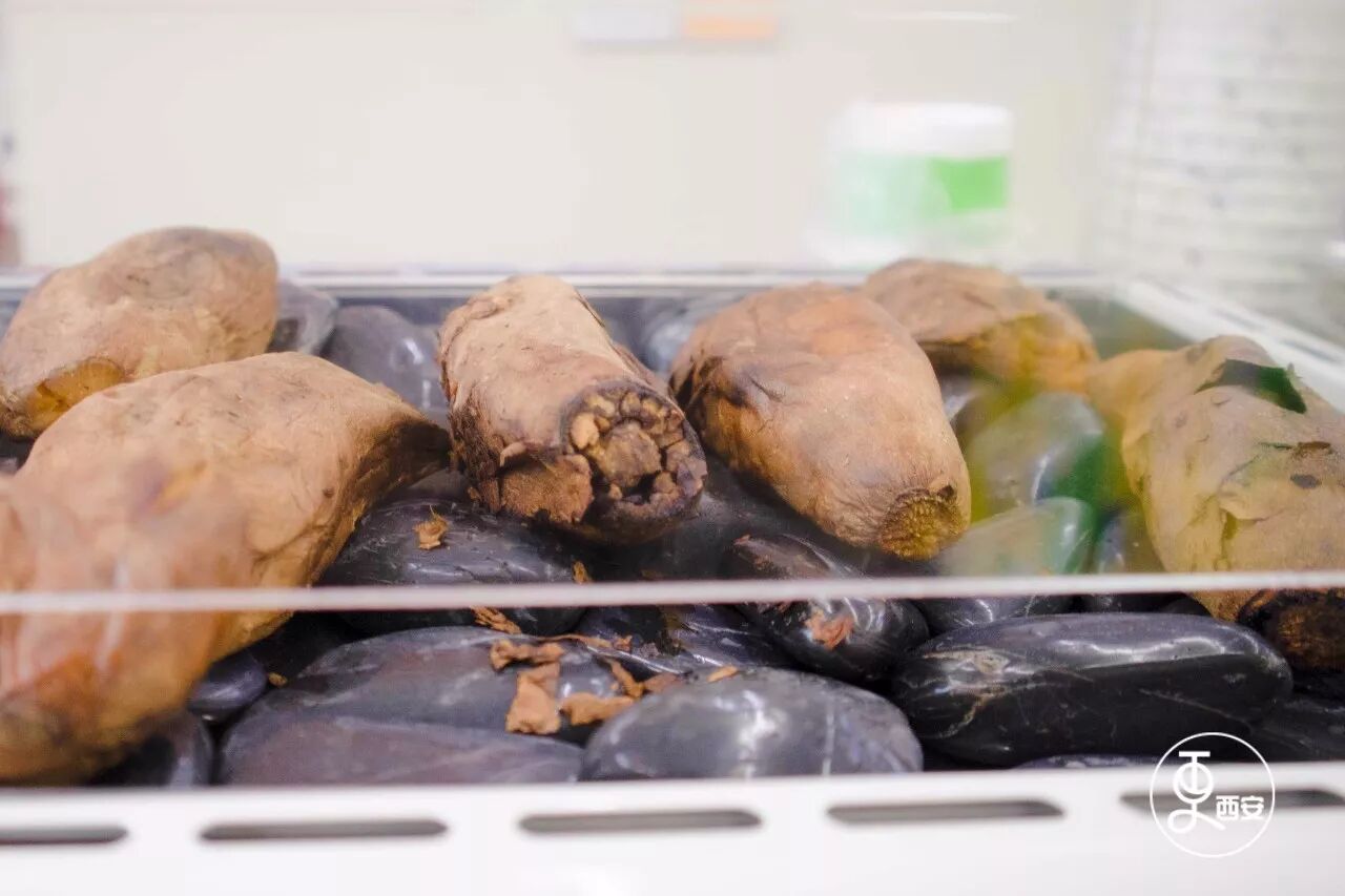 火山石烤红薯,使用火山石烤出来的红薯可以使红薯烤制得更均匀,效率也高,当然最重要的是味道也更好!