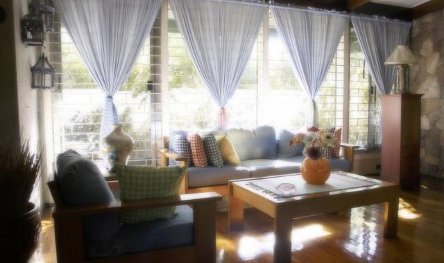 阳光直射的房间,一定要挂窗帘,宜选用吸收热量少、浅色配以遮光布的窗帘。