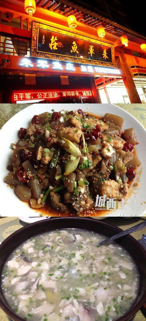 西安的老吃货肯定对“塘坝鱼”这三个字不陌生,十年前它席卷整个西安的势头还历历在目。当时大街小巷都能见到各种塘坝鱼的店,“塘坝鱼”一时间成了人们约会聚餐的首选。可惜的是,塘坝鱼狂潮坚持的时间并不长,没过多久,不少店都陆陆续续的关门了。而朱军鱼庄,就是这剩下的塘坝鱼店之一。塘坝鱼和黄金老碗鱼比较热门,鱼肉软嫩、入味,老碗鱼里的菜品也非常丰富,分量不少。虽然很多朋友说它家的味道大不如前,但还是会有很多老吃货专程前来,这或许是种习惯,也可能是种情结。