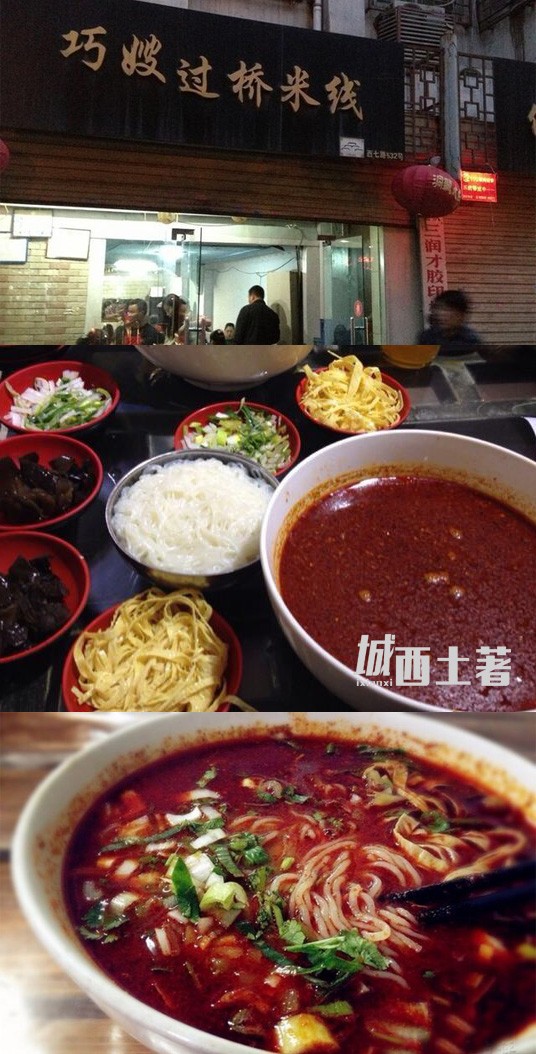 巧嫂虽不是路人皆知,但它在西安老吃货界里可是有着响当当的名气。只要赶上饭点去它家,那就必须要等座。相比于一些连锁过桥米线店,巧嫂则要接地气许多,米线不限量,配菜不够还可以再加一份。麻辣味特别足,而且完全是小时候的味道,辣的很过瘾。土著哥要着重推荐三鲜味的,它绝对不是你想象中的清汤寡水,汤味特别浓醇鲜香。