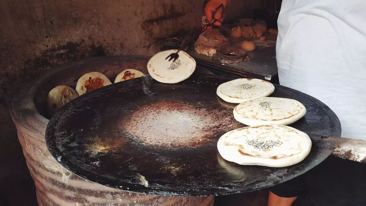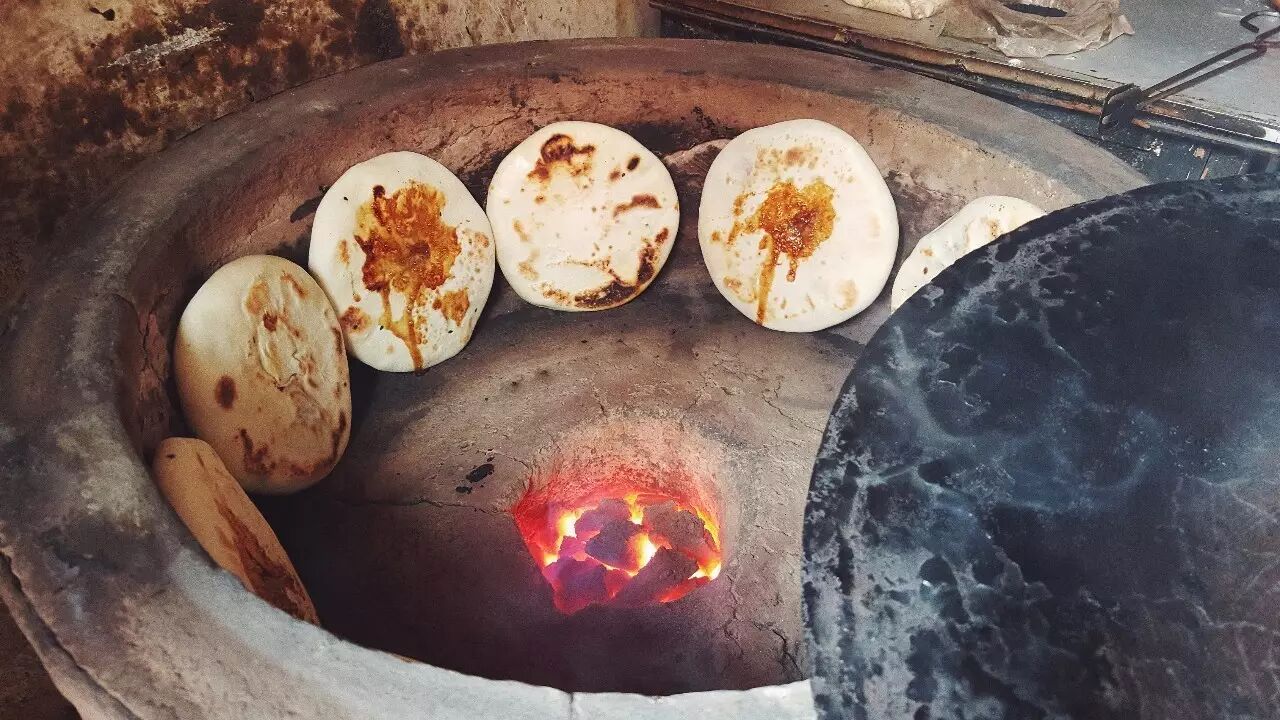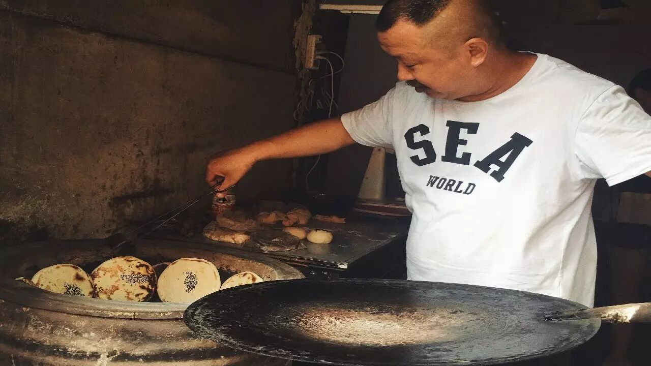 面团从滚滚到扁扁,师傅的熟练的动作一气呵成。一个铁钳子一股脑儿夹出散发着面香、焦香的馍,等待着二次搭配。