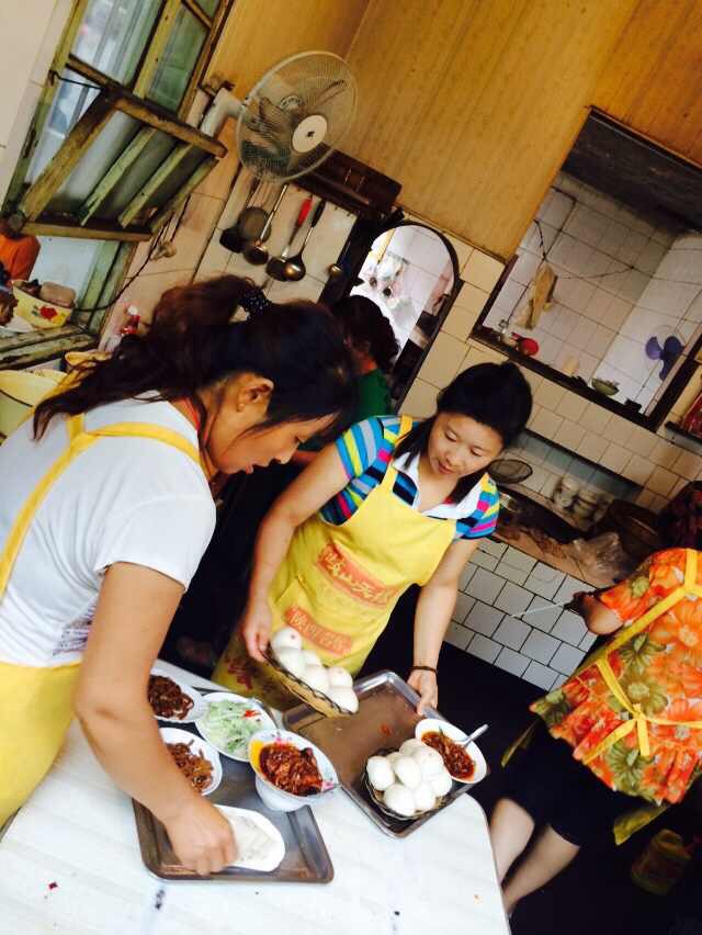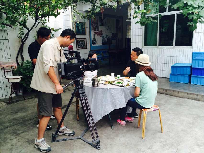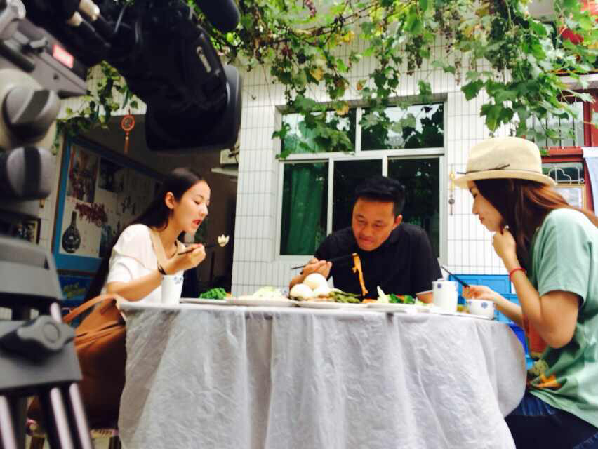 面好了,吴宁越和我们的美女主持人在津津有味地品尝美味的臊子面,而我们的摄像大哥在认真拍摄!大哥,只能说,您辛苦啦!