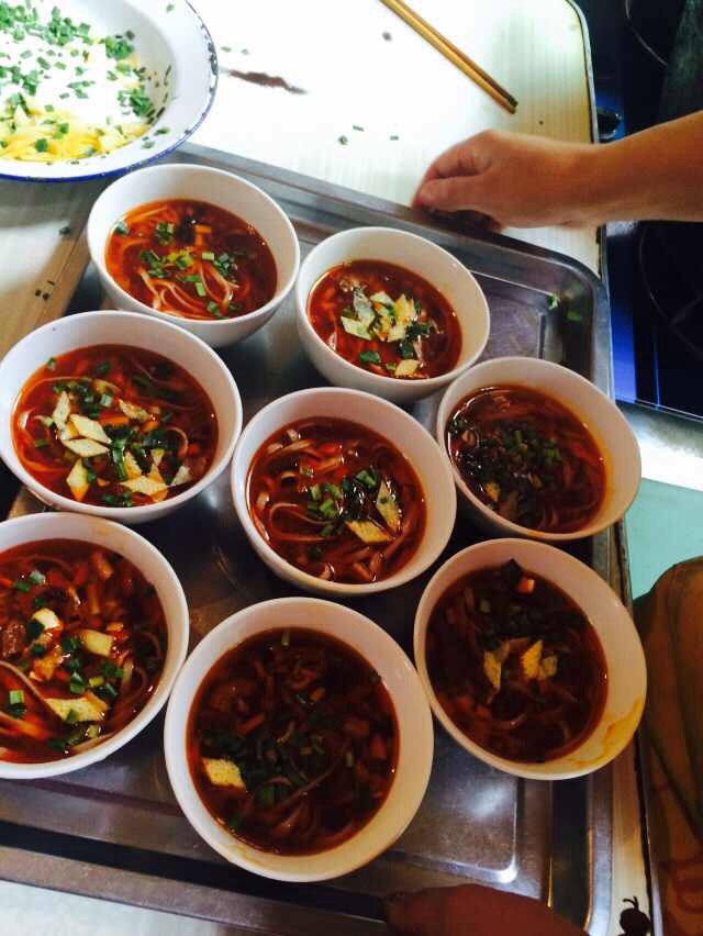 老板还特意为我们准备了六种不同的臊子面除了普通的白面,还有荞麦面等。种类是不是很丰富呢?当地人人还向我们透漏,其实岐山的醋也是很有名的,臊子面里的肉和面都带着一种醋香味,为臊子面增添了独特的风味。
